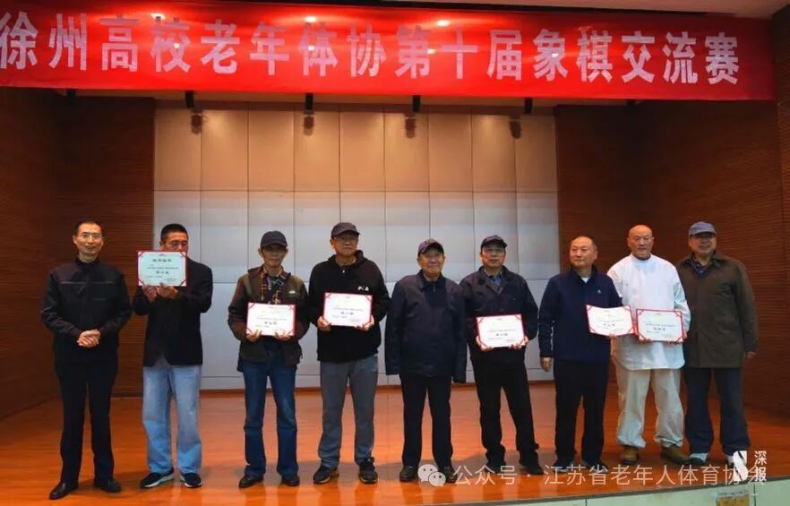 徐州高校老年體協(xié)名譽(yù)會(huì)長(zhǎng)王勇、常務(wù)副會(huì)長(zhǎng)劉圣漢、副會(huì)長(zhǎng)蔣留生等分別為獲獎(jiǎng)個(gè)人和獲獎(jiǎng)團(tuán)體頒發(fā)了榮譽(yù)證書和獎(jiǎng)杯,整個(gè)比賽取得圓滿成功。