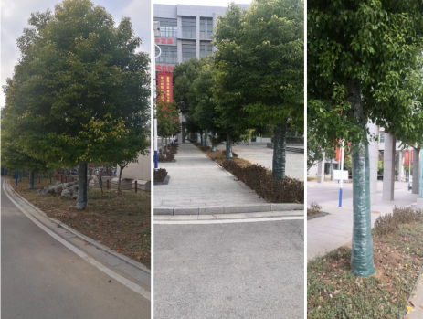 隨著天氣逐漸轉(zhuǎn)冷,為了確保園內(nèi)香樟樹安全過冬,我校采取無紡布加塑料薄膜包裹法的有效防寒措施,為香樟樹穿上綠色的“保暖服”。